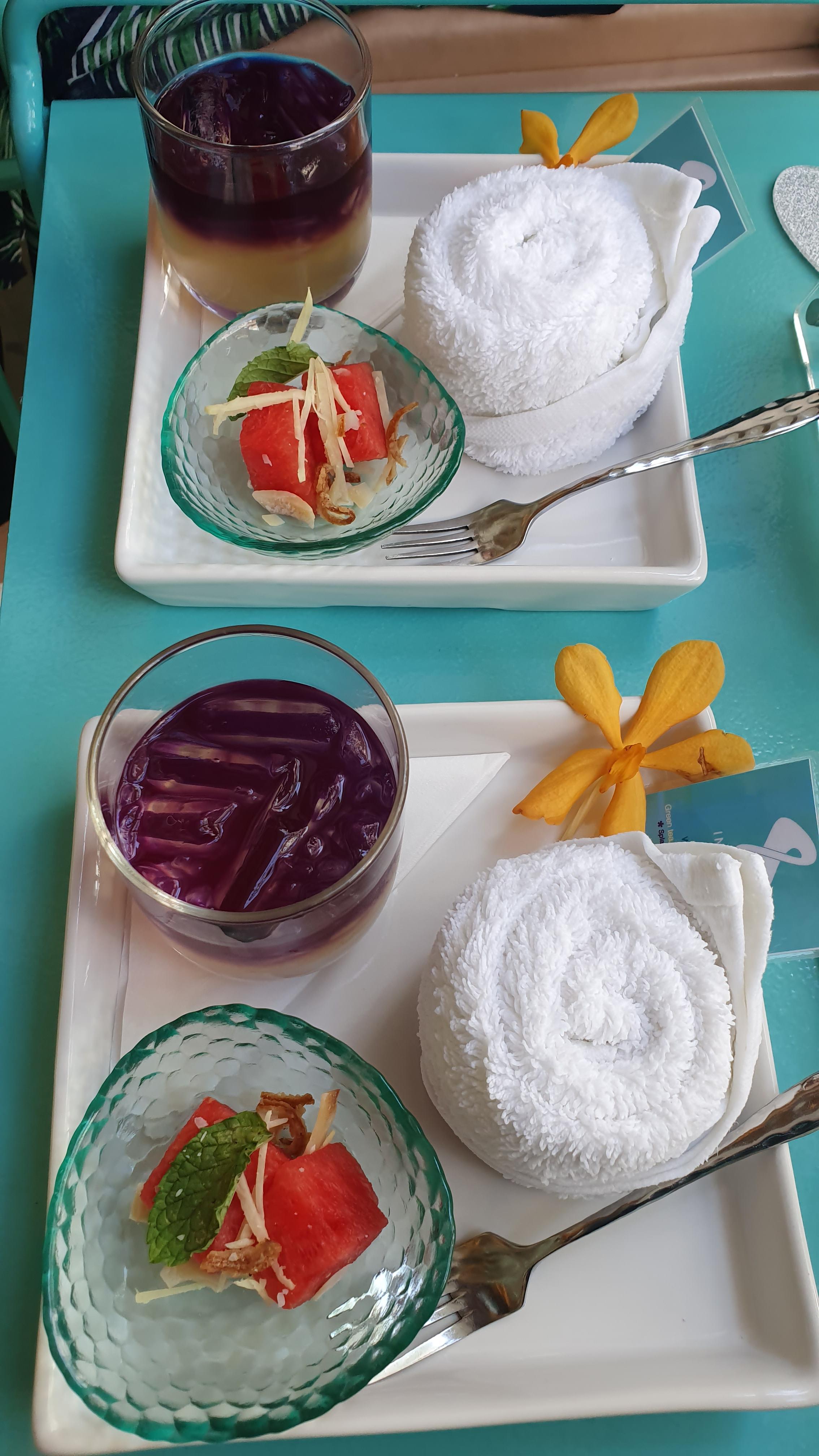 간단한 과일 몇조각과 웰컴티를 제공해 주었다. 시원한 수건과 함께😉😉