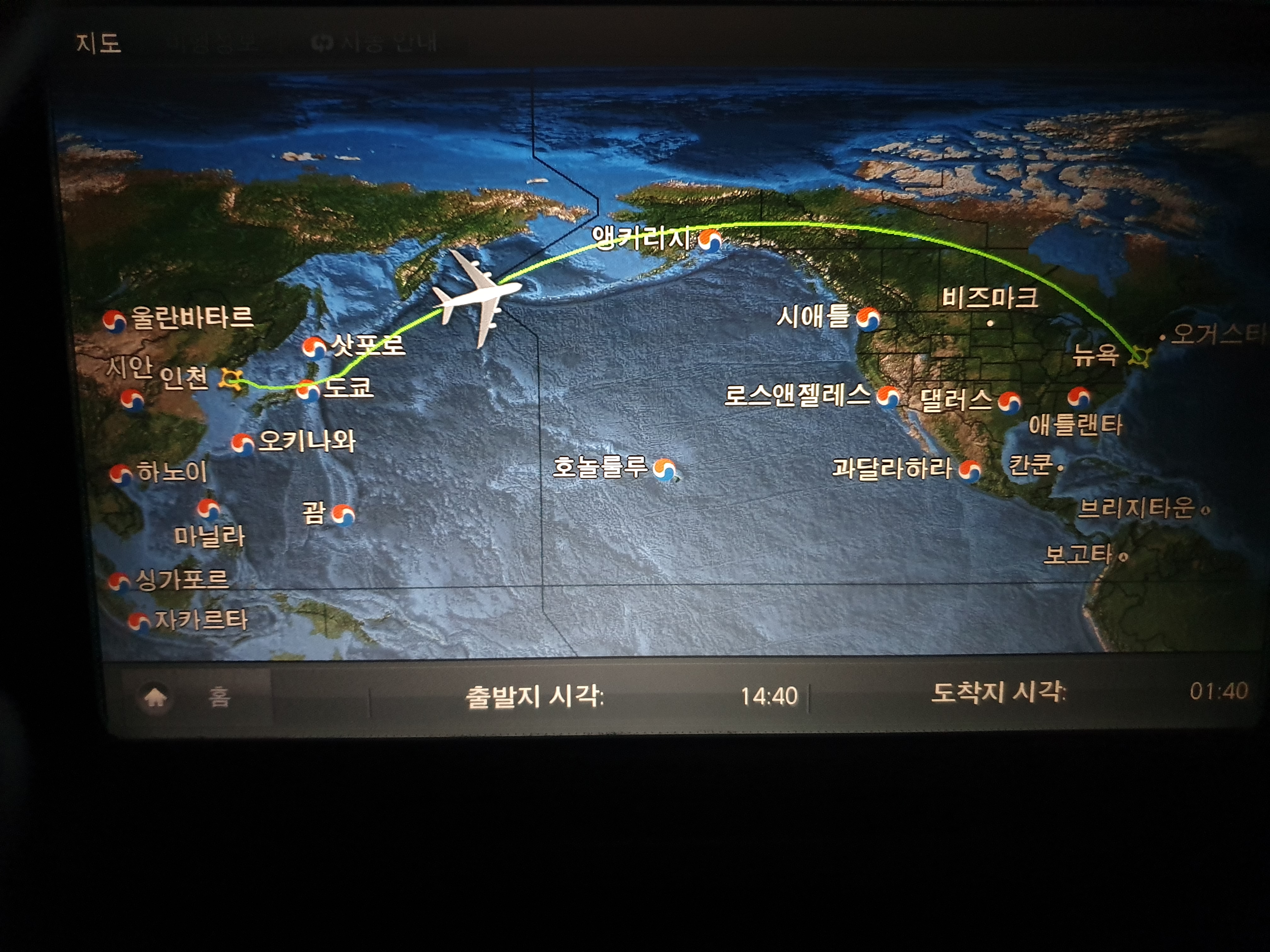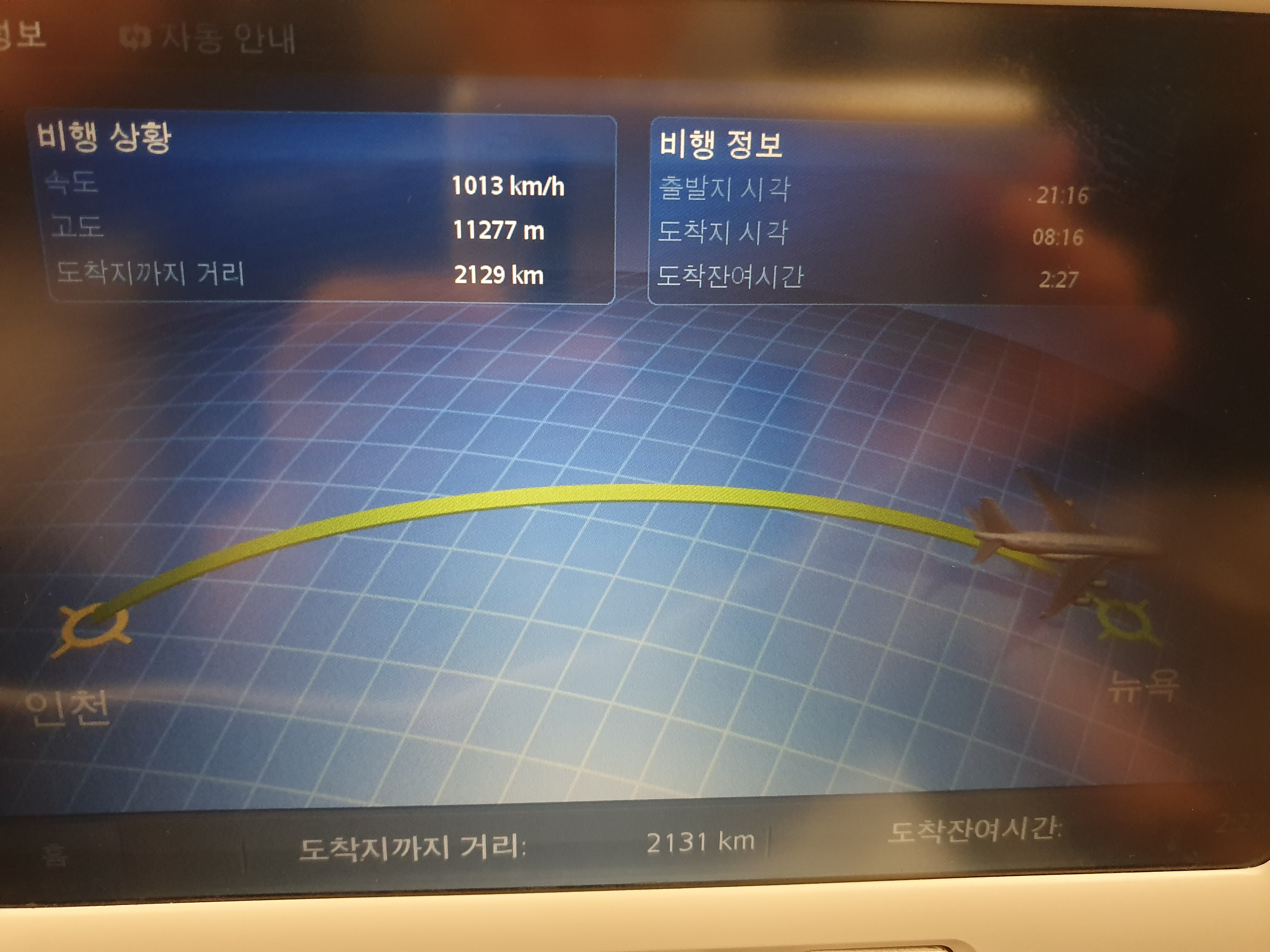 오예! 2시간 남았다. 인천에서 뉴욕까지는 14시간이 소요된다.