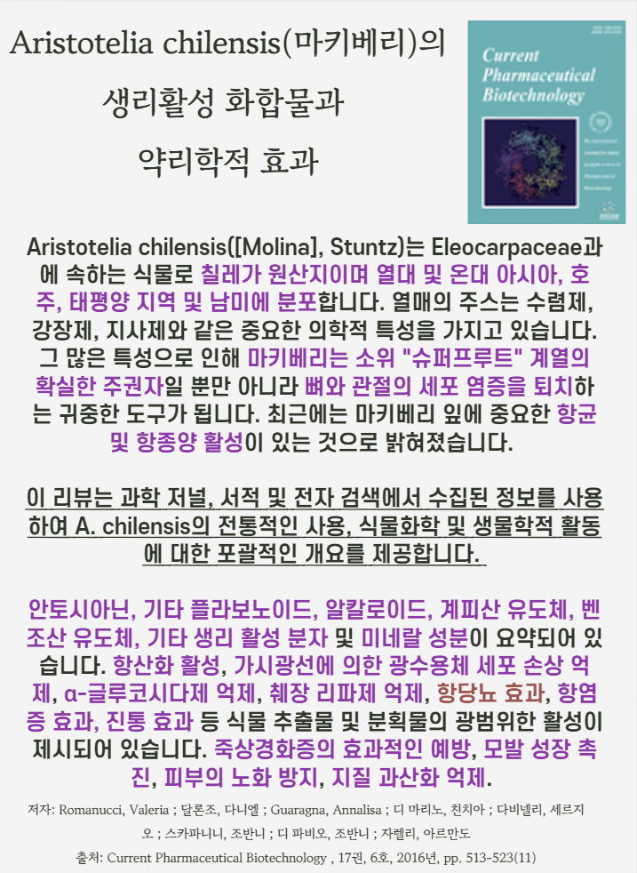구글링 하면서 마키베리에 대해 연구논문이나 과학저널에 실린 내용을 찾아봤어요. 뭔가 알면 알수록 신비한 과일같아요.