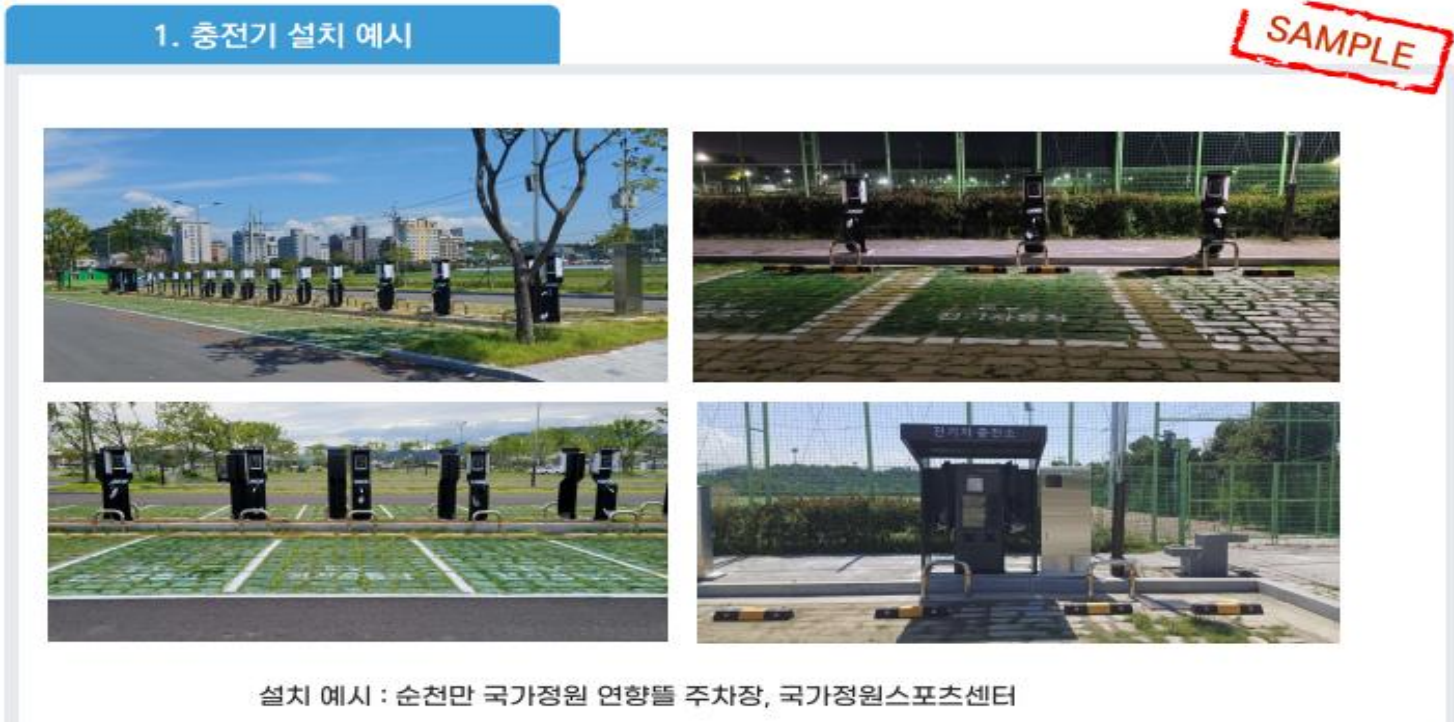 위 사진에서 보시는바와 같이, 순천만 국가정원 연향뜰 주차장에과 국가정원 스포츠센터에 전기차 충전소가 설치된 모습입니다.