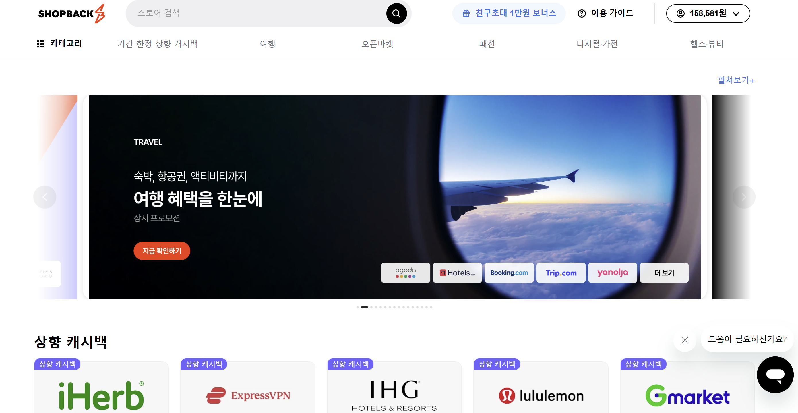 위에 표시된 부분의 금액을 결재한 후 60개월(서비스 환불 기간 지난 후) 내로 환급을 받는다. 100%! 유튜버 분들이 추천하던 VPN 이라 탐났는데.. 아쉽다. 그 외에도 다양한 카테고리가 있다. 여행, 오픈마켓, 패션, 디지털가전, 헬스뷰티,