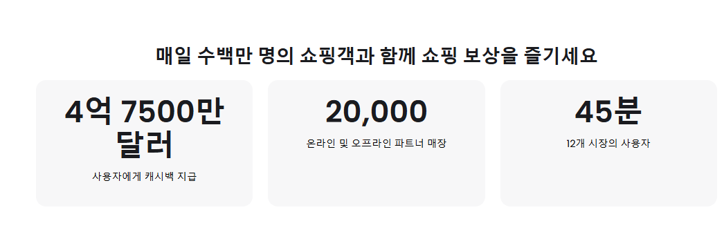 샵백은 싱가폴에서 시작된 10년이 넘는 회사이다. 그래서 샵백코리아 라는 이름으로 서비스를 시작하게 된것이다.